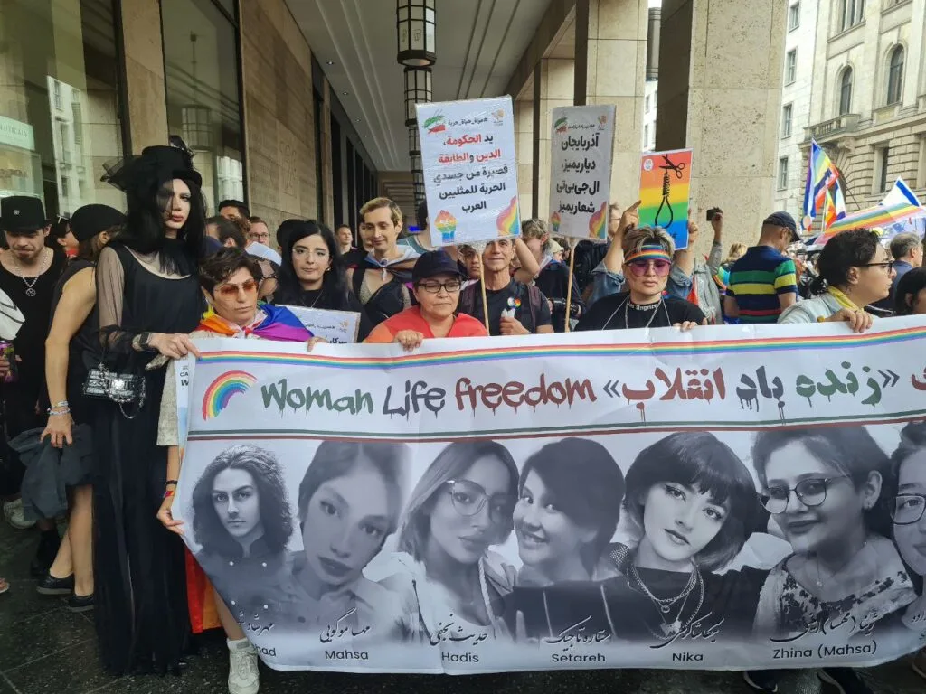 در برلین، رژه افتخار به فراخوان «شبکه شش رنگ» و با مشارکت فعالین سیاسی و حامیان انقلاب زن زندگی آزادی، به صحنه دیگری از حضور متشکل و سازمانیافته فعالین جنبش کوییر ایران برای بلند کردن صدای دادخواهی و حقطلبی رنگینکمانیهای ایرانی تبدیل شد. در این مراسم شرکتکنندگان بنر تصاویر جانباختگان انقلاب زن زندگی آزادی را حمل میکردند، اعتراض خود به صدور و اجرای احکام اعدام در ایران را فریاد زدند و صدای رنگینکمانیها در بخشهای مختلف ایران از تهران تا بلوچستان و خوزستان و کردستان را بازتاب دادند.