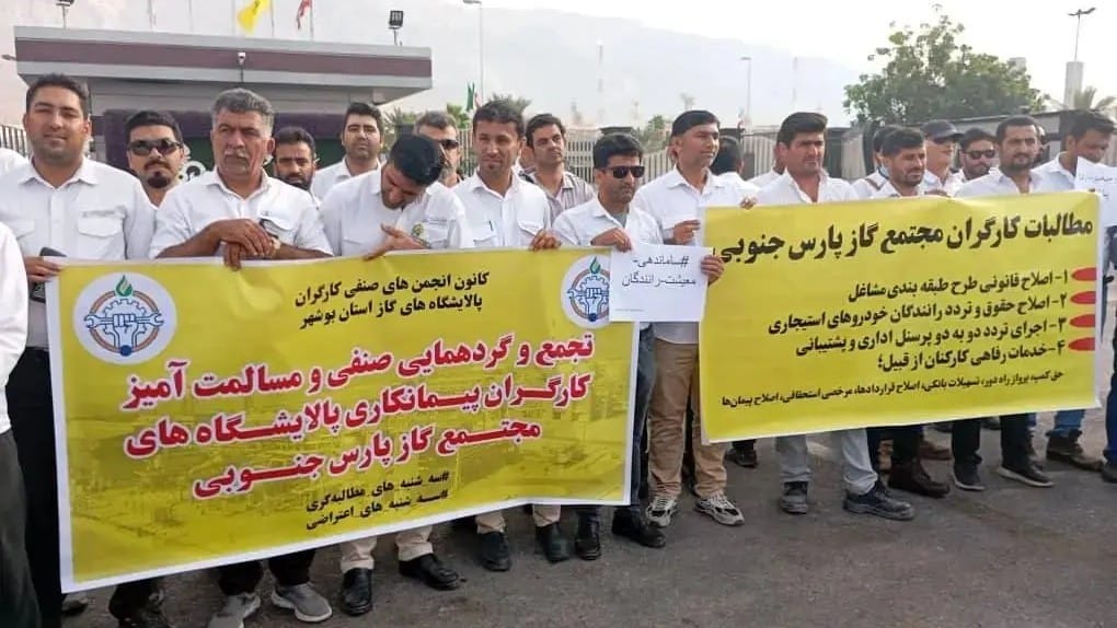 سهشنبه ۶ آبان ۱۴۰۴، کارگران پیمانکاری مجتمع گاز پارس جنوبی در نخستین مرحله از اعتصاب و تجمع درونپالایشگاهی خود، صدای اعتراضشان را علیه بیحقوقی، تبعیض و شرایط سخت معیشتی طنینانداز کردند.